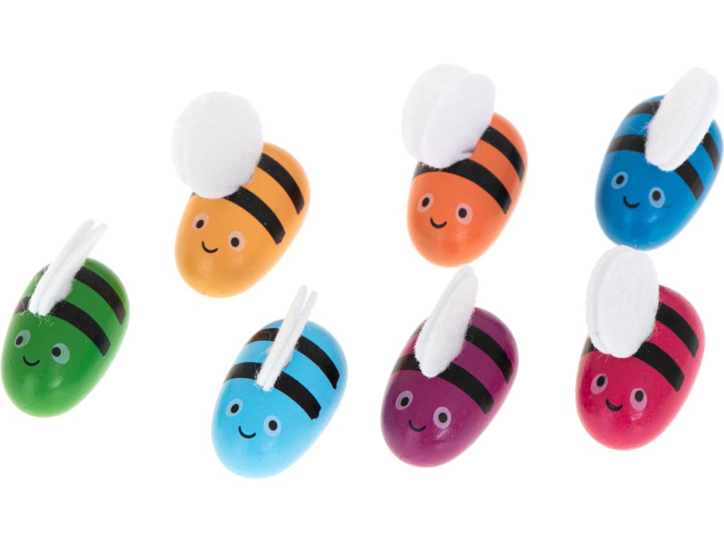 7ks barevných dřevěných včel