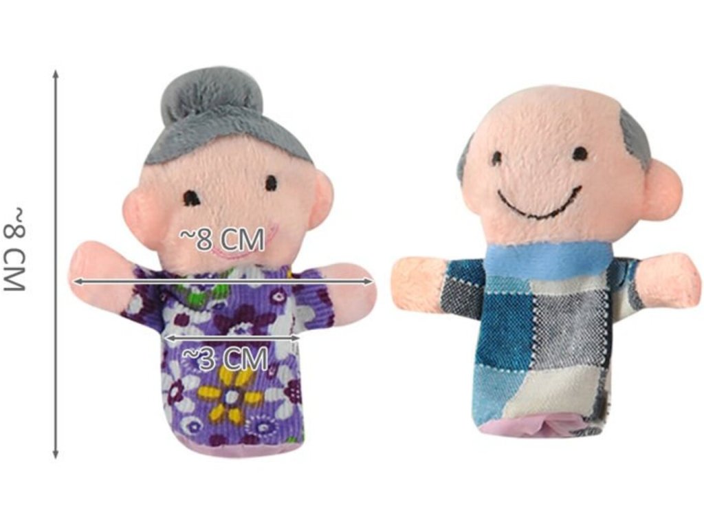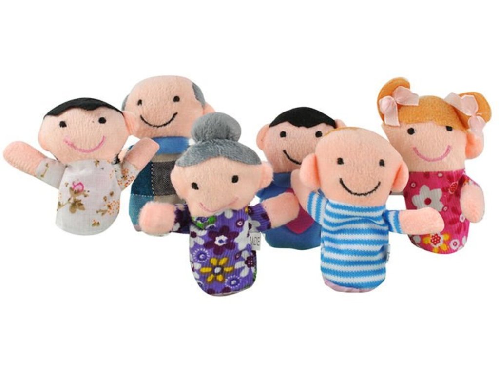 Sada 6 maňásků veselá rodina jsou loutky na prst. Jsou výborné na hraní loutkového divadla. Na každý prst nasaďte jednu loutku a divadlo může začít. Panáčci jsou vhodné jak na prsty malého dítěte tak na prsty dospělého. Jsou to malá vycpaná různobarevná zvířátka příjemná na dotek, takže ihned upoutají pozornost Vašich dětí. Navíc hra s loutky rozvijí fantazii, tvořivost a představivost dětí, u menších dětí i motorické dovednosti. Maňásci na prsty jsou velmi lehcí a dobře skladní, takže je můžete vzít sebou kamkoli. Zahrajte si divadlo s loutkami a přeneste se do pohádkového příběhu, který si sami můžete vymyslet.