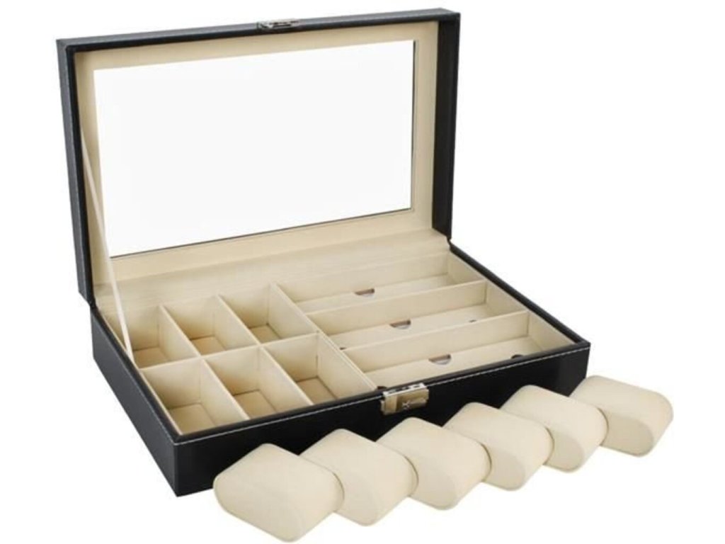 - Počet přihrádek: 6 na hodinky + 3 na brýle