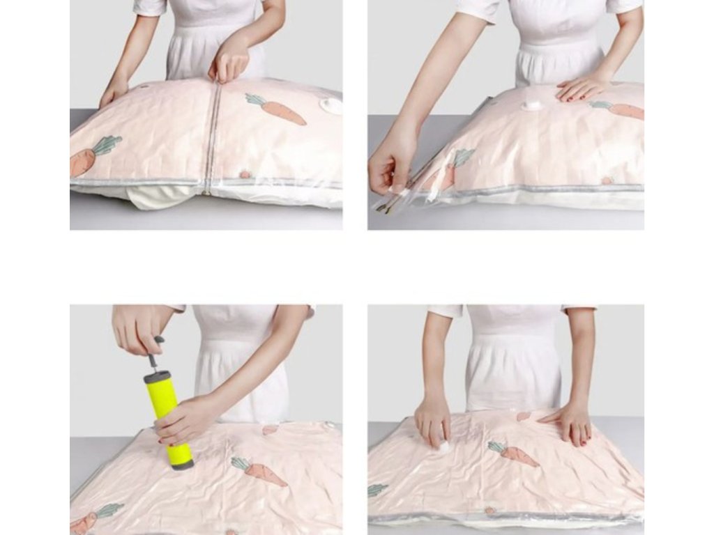Objevte revoluční způsob, jak efektivně ušetřit prostor a zajistit maximální ochranu vašich cenností s naší prémiovou 10dílnou sadou vakuových sáčků! Představte si, jak snadno a rychle můžete zmenšit objem vašich věcí až o neuvěřitelných 80 % - stačí obyčejný vysavač nebo námi přiložená odsávačka. Ať už se připravujete na dovolenou, stěhování, nebo chcete jen uklidit sezónní oblečení, naše sáčky vám usnadní život. Nyní už se nemusíte bát prachu, vody a nežádoucích škůdců jako moli – vše zůstane v bezpečí a skvělé kondici. Navíc naše sáčky můžete používat opakovaně, a tak vaše oblečení zůstane vždy svěží a voňavé. Zamilujte si jednoduchost a praktičnost, díky které ušetříte nejen místo, ale i čas. Nečekejte a zažijte revoluci v ukládání věcí. Objednejte si naši 10dílnou sadu vakuových sáčků ještě dnes a začněte využívat všech výhod, které vám nabízíme. Buďte připraveni na všechny životní situace - doma i na cestách!