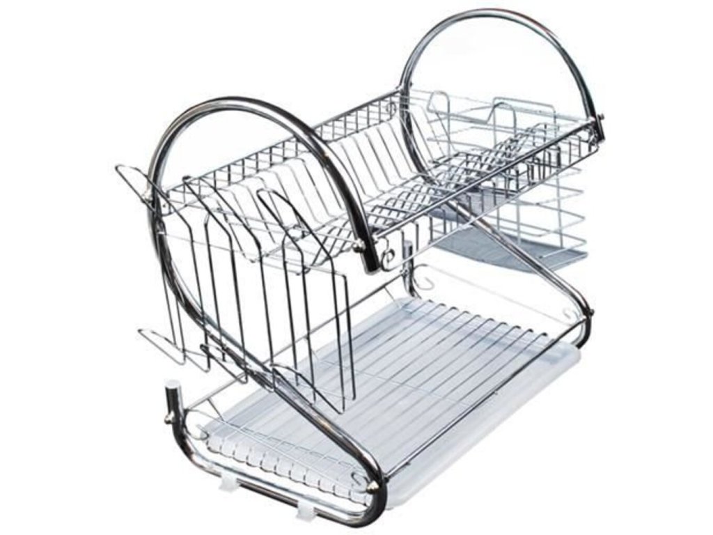 Vynikající Patrový odkapávač na nádobí (chrom). Horní patro má prostor pro 17 talířů . Spodní část je naopak určena pro misky, hrnky, hrnce atd. Odkapávač je stabilní, odolný vůči zvýšené vlhkosti. Díky modernímu a elegantnímu designu bude Patrový odkapávač ozdobou vaší kuchyně! Sada obsahuje odnímatelnou odkapávací misku na příbory a sklenice - stačí ji zavěsit na boční příčky odkapávače. Lze je libovolně měnit a odstraňovat.