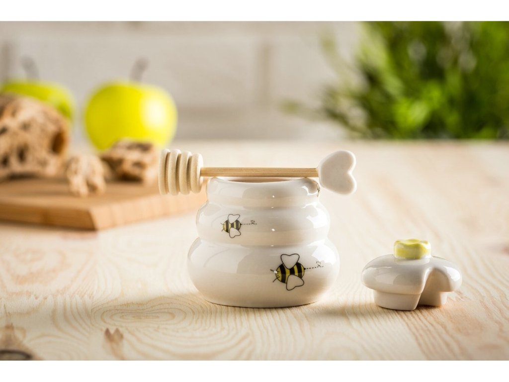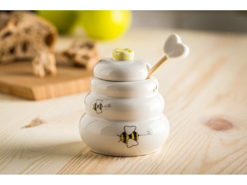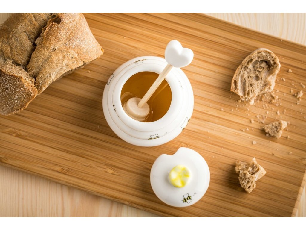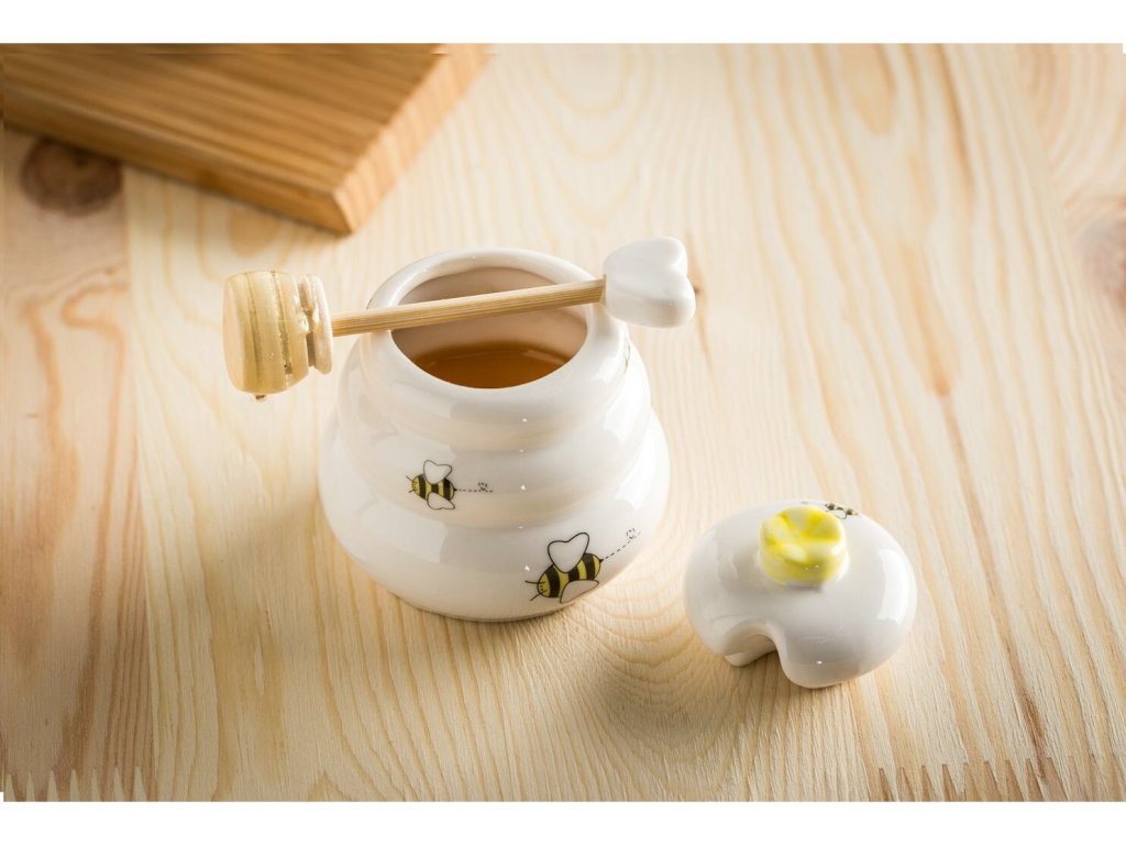 Máte známé včelaře a chcete jim udělat radost dárkem k narozeninám? Máme pro vás opravdu nádhernou sadu, která potěší každého včelaře. Porcelánová nádoba na med ve tvaru včelího úlu je stylovým kouskem a ozdobou do Vaší kuchyně. K nádobě je i dřevěná naběračka medu s porcelánovým srdíčkem. Na nádobě jsou nakresleny také včelky a vše je úhledně zabaleno v dárkovém balíčku se stužkou. Porcelánová nádoba na med je krásným kouskem a originálním dárkem pro včelaře. Včeličky budou jistě rády, když budete jejich výtvor skladovat v takové pěkné nádobě.