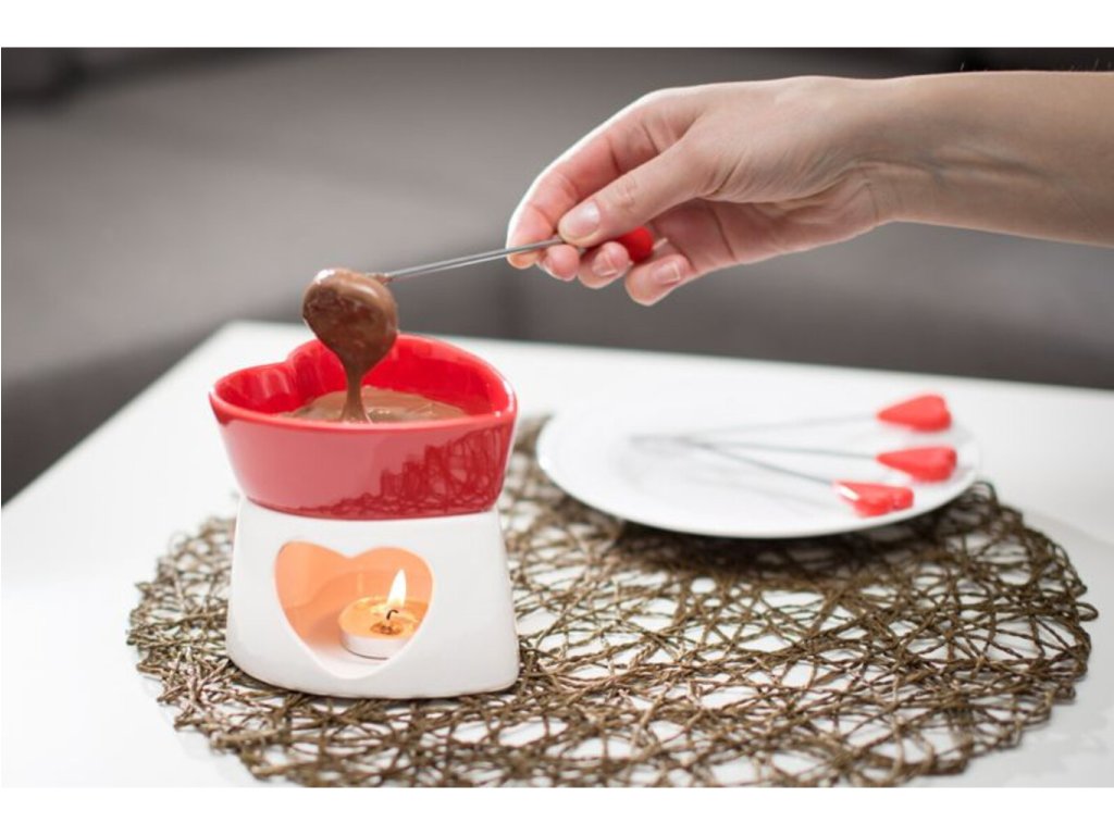 Užijte si se svou přítelkyni romantický večer s tímto romantickým fondue. Malý set pro dva je vyroben z keramiky a čokoláda se roztápí pomocí svíčky. Pořídíte-li si tento užitečný set, určitě na svou přítelkyni zapůsobíte. Originální dárek pro zamilované.