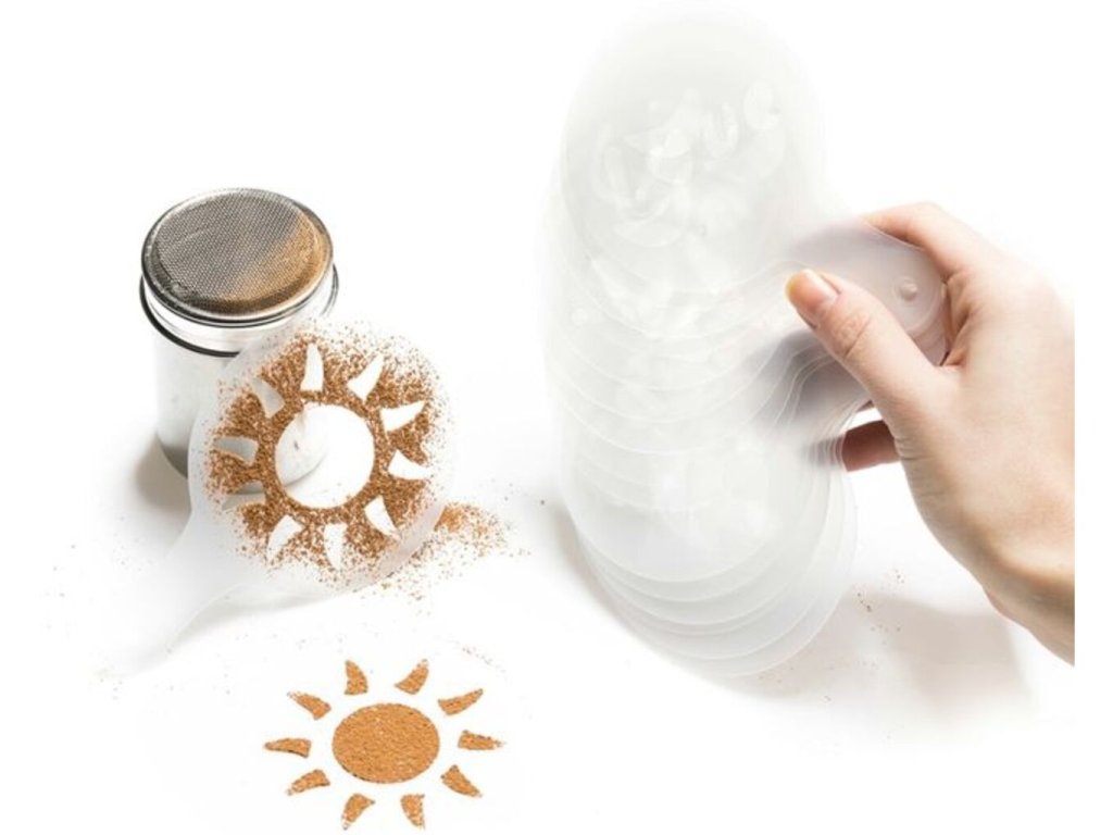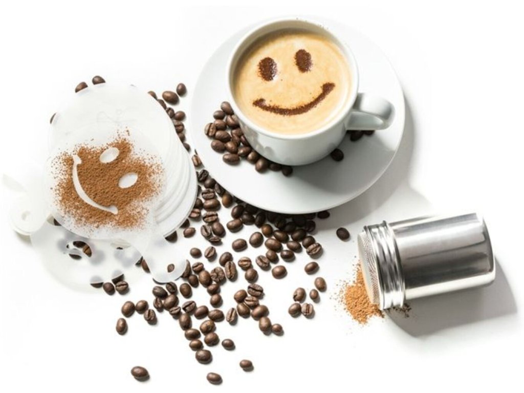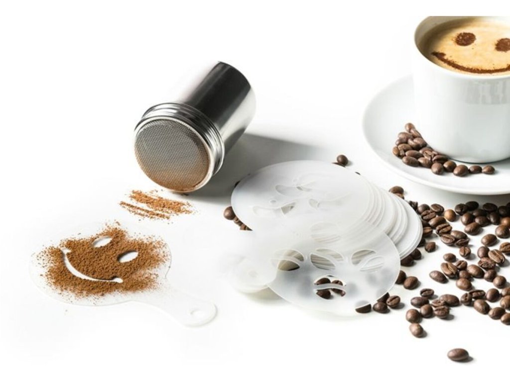 Není nad to dopřát si příjemný odpočinek u šálku kávy. Představte si, že nyní si můžete chvíli u kávy zpříjemnit roztomilými obrazci na kávě. Nabízíme Vám šablony na kávu 16 ks/sada se zdobícím sítkem. Díky této sadě můžete vykouzlit na kávě spoustu krásných obrazců, kterým můžete potěšit například návštěvu, nebo svou drahou polovičku. Díky těmto šablonám bude káva chutnat o mnoho lépe. Představte si, že donesete své lásce kávu do postele s milým smajlíkem nebo srdíčkem. Pomocí šablonek a sítka můžete na kávě vytvořit různé obrázky a sdělit tak své pocity. Šablony na kávu 16 ks/sada se zdobícím sítkem jsou originálním dárkem pro milovníky kávy.