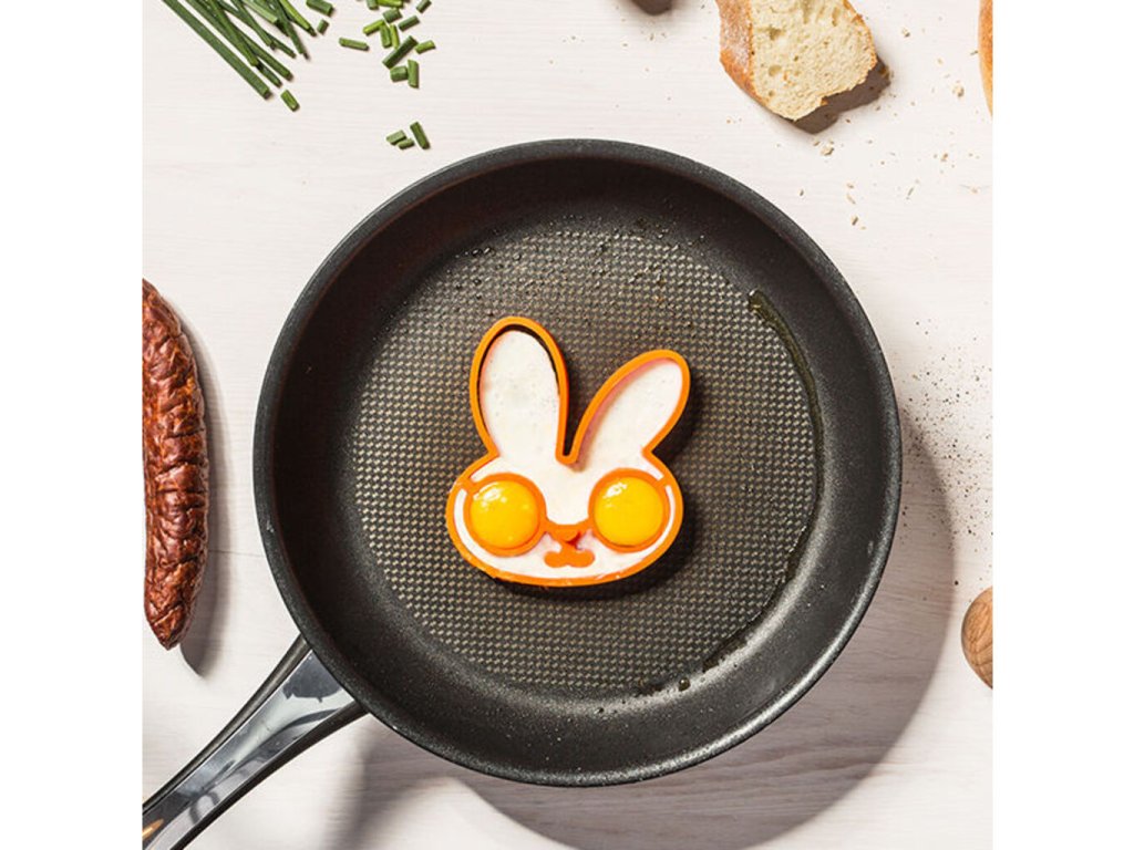 Překvapte své děti skvělou Velikonoční snídaní v podobě králičích vajíček. Silikonová forma na vajíčka ve tvaru králíčka vytvoří na pánvi z rozklepnutého vejce krásného králíčka, kterého můžete ozdobit zeleninou a podávat dětem jako snídani. Děti si Vaše snídaně rychle oblíbí a budou se na ně těšit. Volská oka z kvalitní silikonové formy ve tvaru králíčka se stanou populární v celé rodině. Silikonové formy na vajíčka - králík jsou originální dárek do kuchyně.