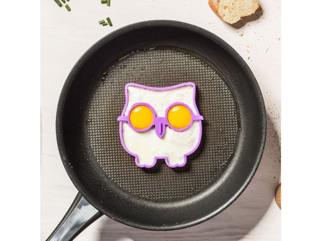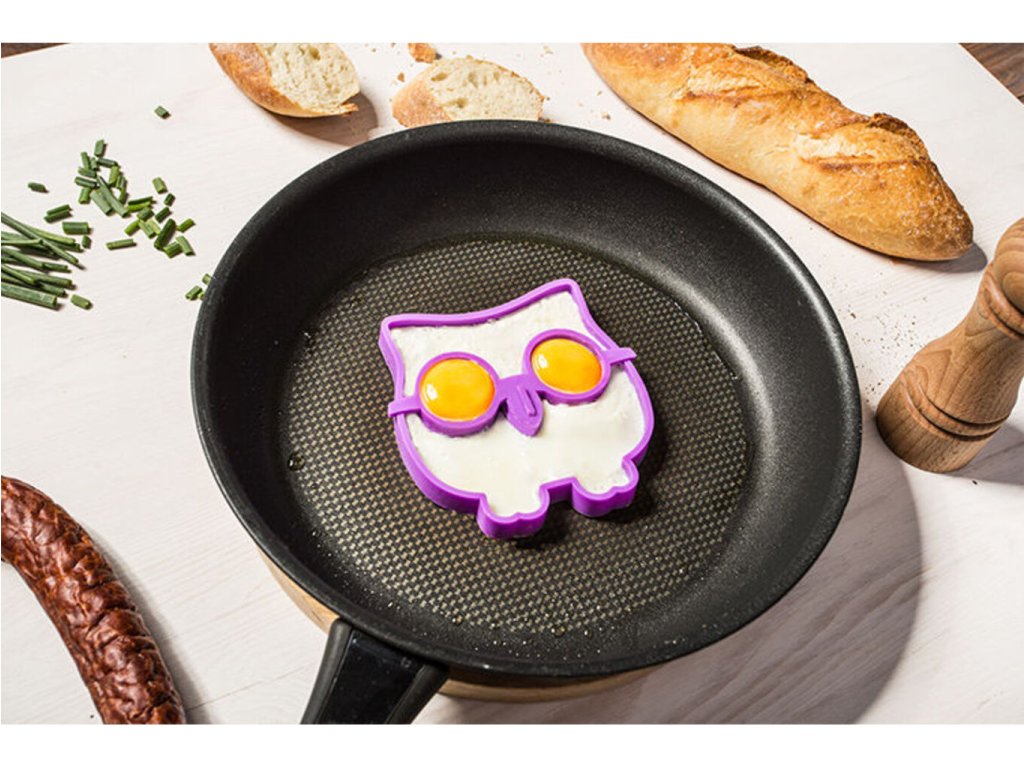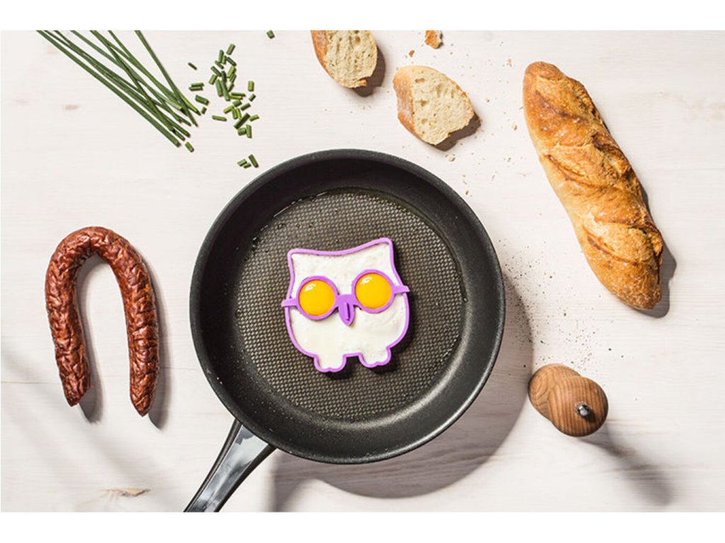 Překvapte své děti skvělou snídaní v podobě vaječných soviček. Silikonová forma na vajíčka ve tvaru sovy vytvoří na pánvi z rozklepnutého vejce veselou sovu, kterou můžete ozdobit zeleninou a podávat dětem jako snídani. Děti si Vaše snídaně rychle oblíbí a budou se na ně těšit. Volská oka z kvalitní silikonové formy ve tvaru sovy se stanou populární v celé rodině. Silikonové formy na vajíčka - sova jsou originální dárek do kuchyně.