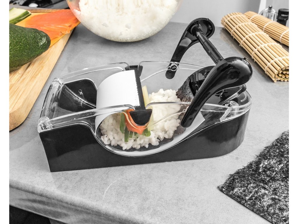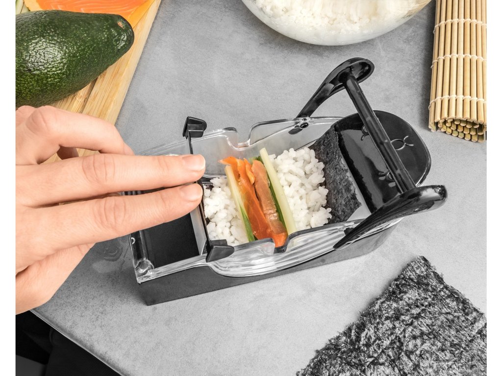 Patříte mezi ty, co si potrpí na netradiční pokrmy? Máte rádi sushi? Nyní si můžete snadno a rychle udělat doma vlastní sushi. Díky tomuto speciálnímu Sushi Makeru nemusíte sushi umět, stačí jen Maker naplnit všemi potřebnými surovinami, potom zatáhnout a vše je hotové. Jediné co potřebujete je řasa, rýže a vše co Vám v sushi chutná. Můžete pozvat návštěvu a servírovat lahodný pokrm, který vyrobíte velmi jednoduše. Sushi Maker je originální dárek do kuchyně.