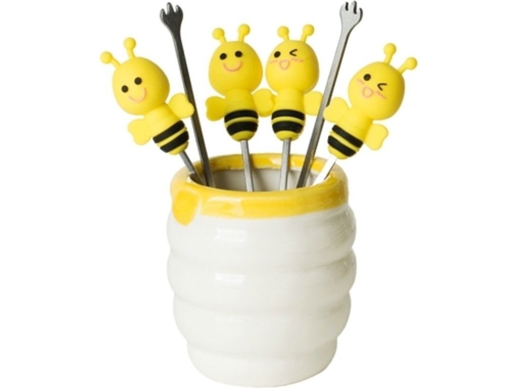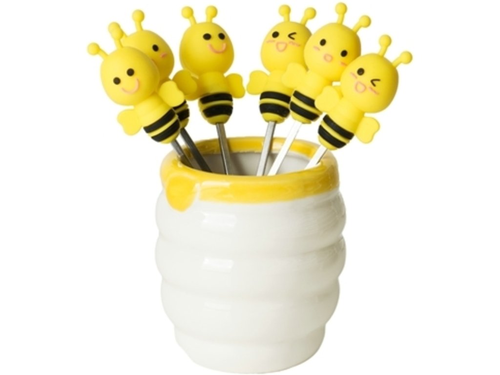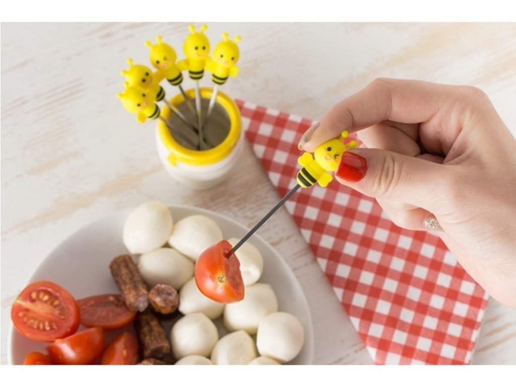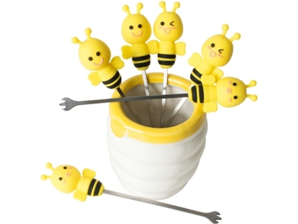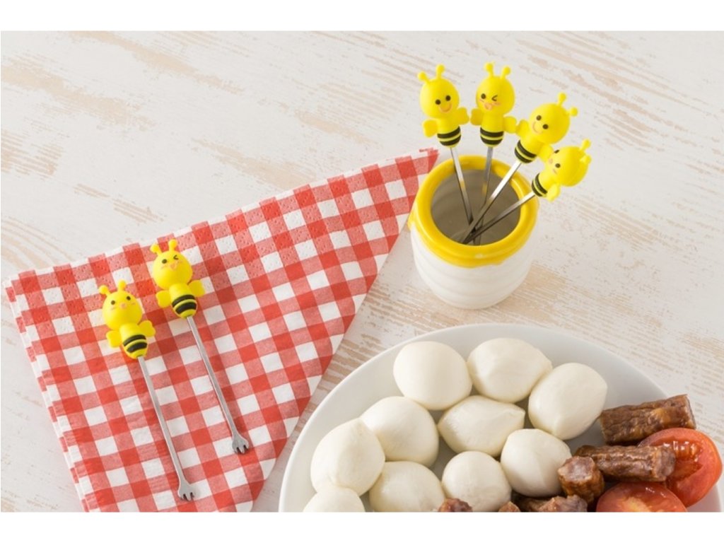 Chystáte pohoštění pro návštěvu a chcete na stůl připravit obložené mísy jen tak na ďobání? Nechcete na stůl dávat obyčejné vidličky? Pořiďte si tyto originální vidličky včelky - sada 6ks. Vidličky včelky - sada 6ks jsou skvělým doplňkem na každý stůl. Jejich originální vzhled nadchne každou návštěvu. Vidličky včelky mají originální mističku na jejich uložení. Darujte tyto včeličky třeba jako kolaudační dárek.
