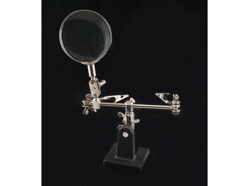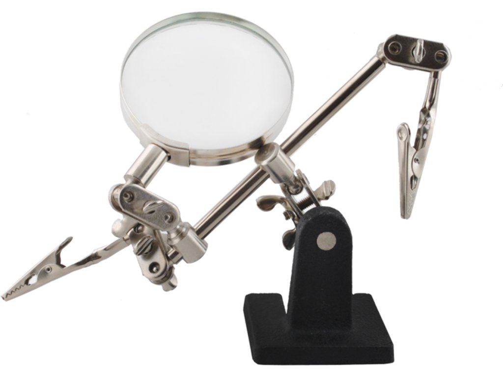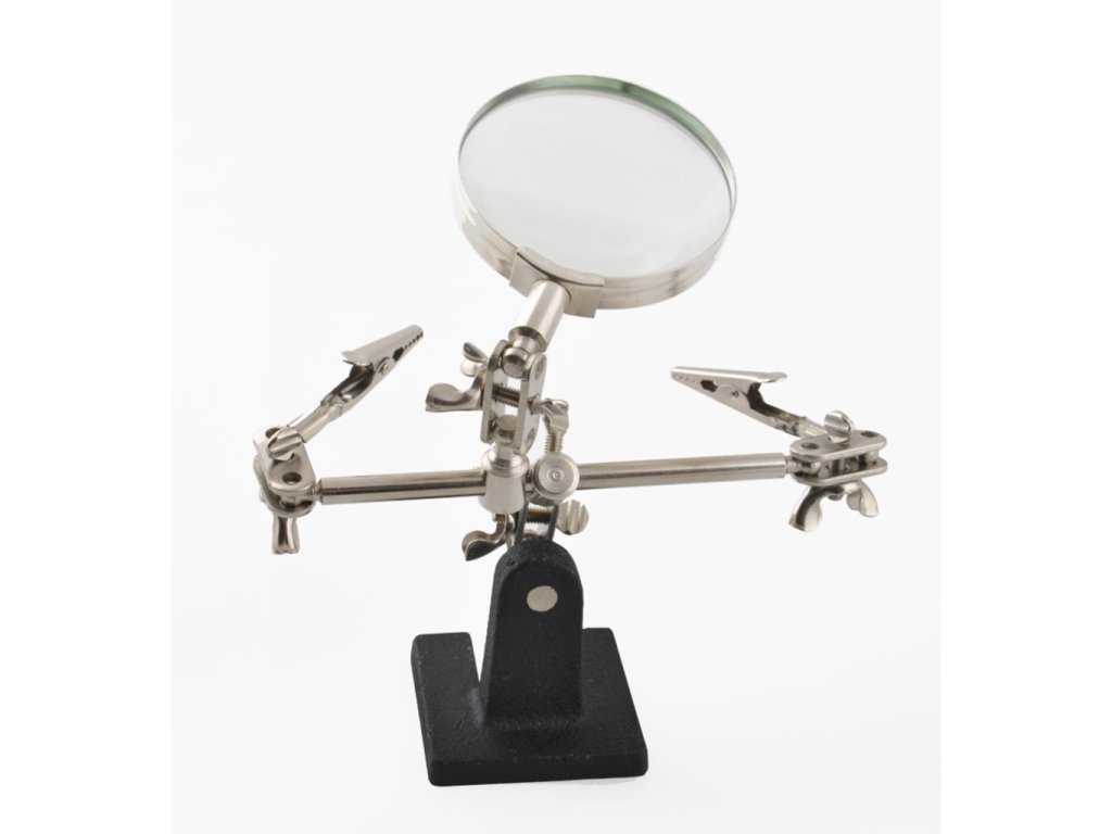 Při některých pracích si člověk říká, že by potřeboval mít ještě třetí ruku. Nic není nemožné. Představujeme Vám tento šikovný držák s lupou - třetí ruka. Tuto praktickou vychytávku uvítají především ti, kteří se věnují elektronickým a elektrotechnickým pracím. Souprava obsahuje lupu, stativ a držák, neboli třetí ruku. Díky lupě uvidíte i na ty nejmenší součástky a pomocí držáku si můžete přidržet další předměty. Držet lupu, opravovat a zároveň ještě přidržovat předmět může být obtížné. Díky této třetí ruce bude každá práce snadnější. Pokud opravujete například hodinky, šperky či jiné předměty, tuto věcičku uvítáte. Držák s lupou - třetí ruka je originální dárek pro usnadnění práce.