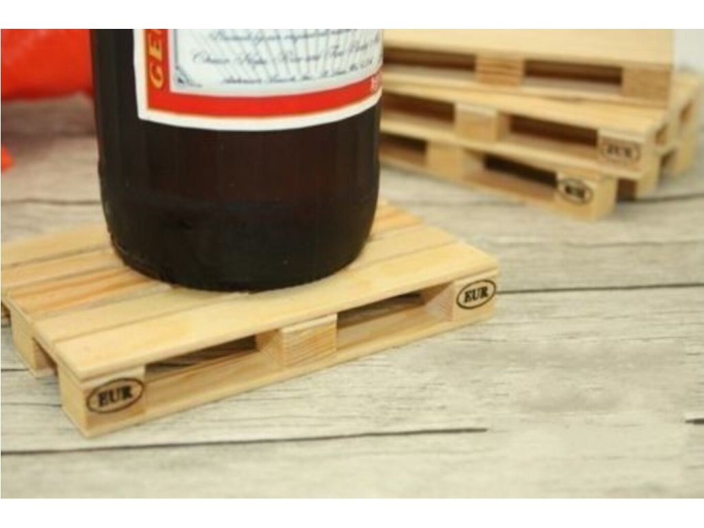 Naše miniaturní palety se používají jako tácky na láhve, skleničky, hrnky a kelímky. Mini europalety jsou pozoruhodně podobné svým původním modelům a překvapí a usmějí tváře každého, kdo má kontakt s přepravou zboží na paletách. Originální dárek pro skladníka, řidiče kamionu nebo zaměstnance logistiky.