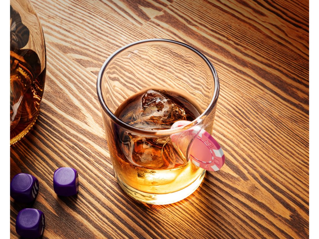 - sklenice s herním žetonem zasazeným ve skle