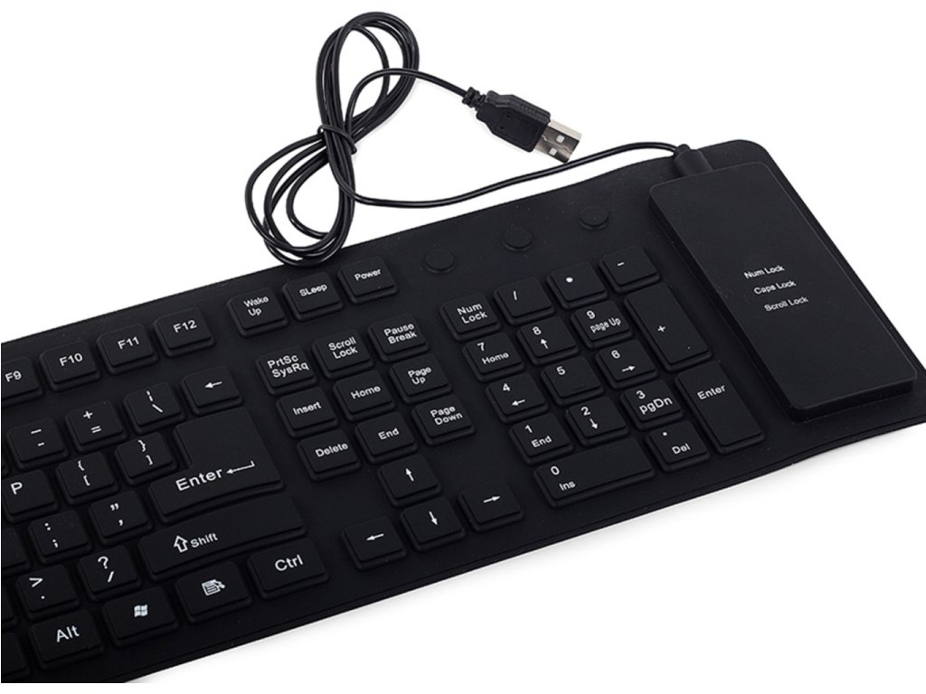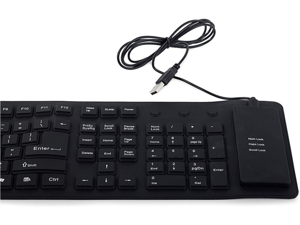 Pokud často pracujete s počítačem v terénu, určitě se Vám bude hodit tato silikonová klávesnice. Ta se hodí všude tam, kde se klasická klávesnice nevejde. Díky tomu, že je celá ze silikonu, je skladná a vy ji můžete pohodlně svinout do ruličky, když ji zrovna nepotřebujete nebo ji potřebujete přesunout. Navíc je odolná vůči prachu! Originální dárek pro tvrdé pracanty.