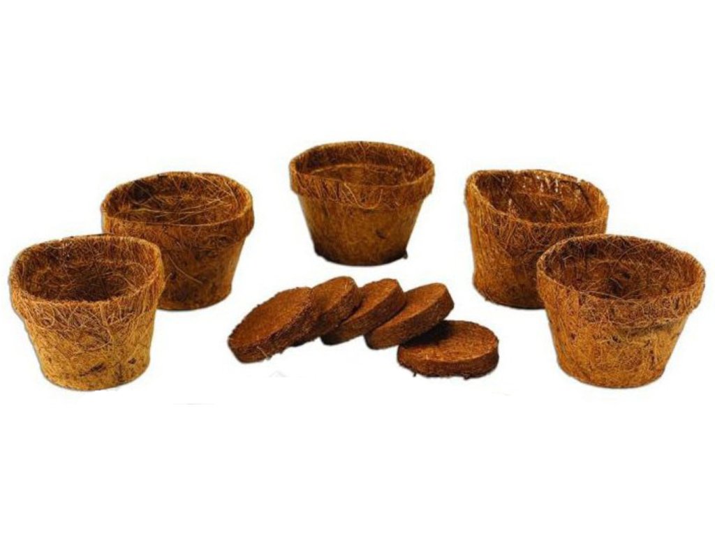 - 5 květináčků z kokosových vláken