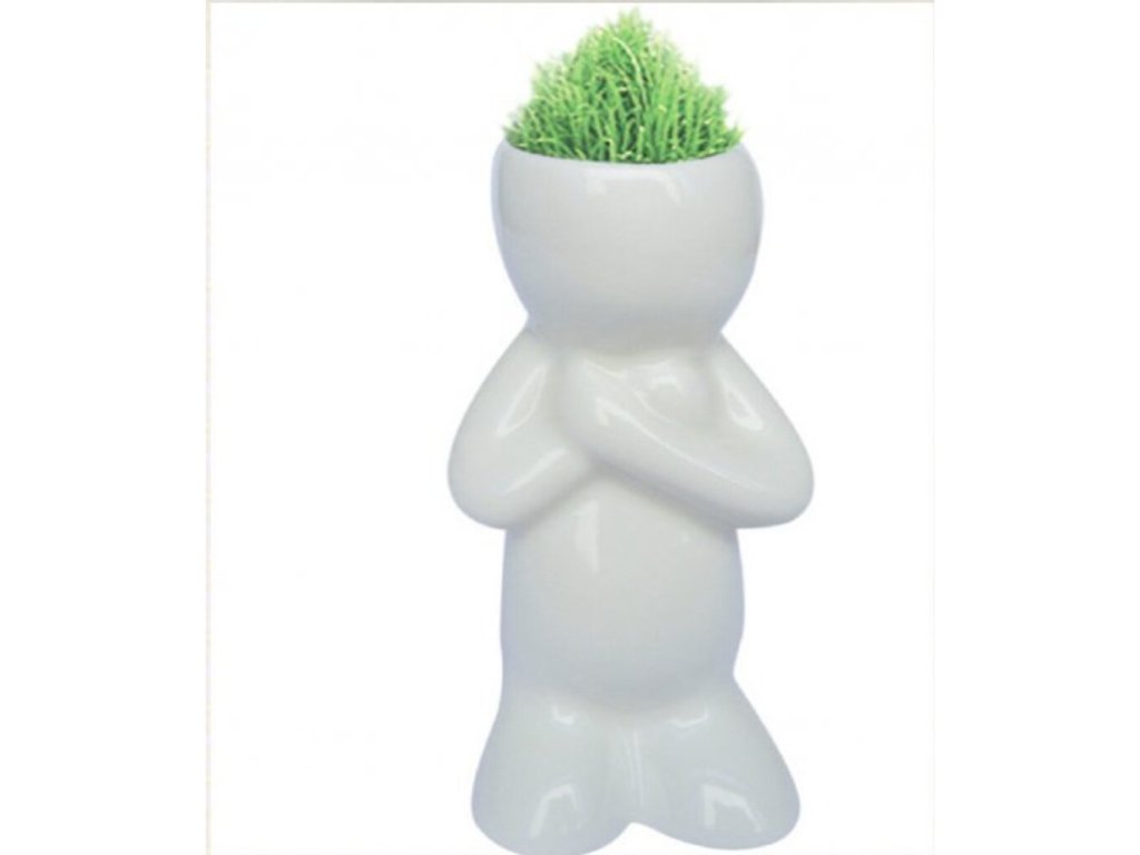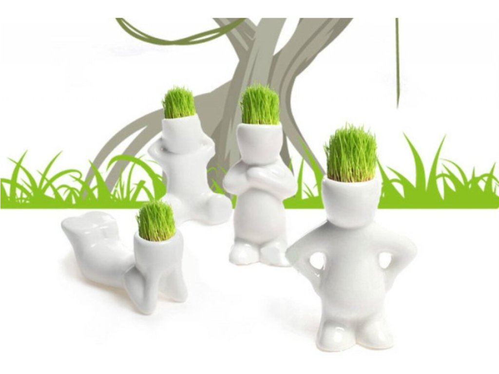 Tento malý roztomilý panáček Vám připraví plno zábavy a také zkušeností. Panáček se jmenuje Travňák keramický a místo vlasů mu roste živá tráva, o kterou se musíte starat. Na hlavičce Travňáka jsou semínka trávy. Nalijte Travňákovi na hlavu horkou vodu a pak již pozorujte, jak mu zelená kštice rychle roste. Trávu můžete panáčkovi zastřihávat a vytvářet mu i různé účesy. Travňák keramický je milý společník, který by neměl ve Vaší domácnosti chybět. Travňák keramický je originální dárek do domácnosti, jako dekorace, ale i pro mladé pěstitele.
