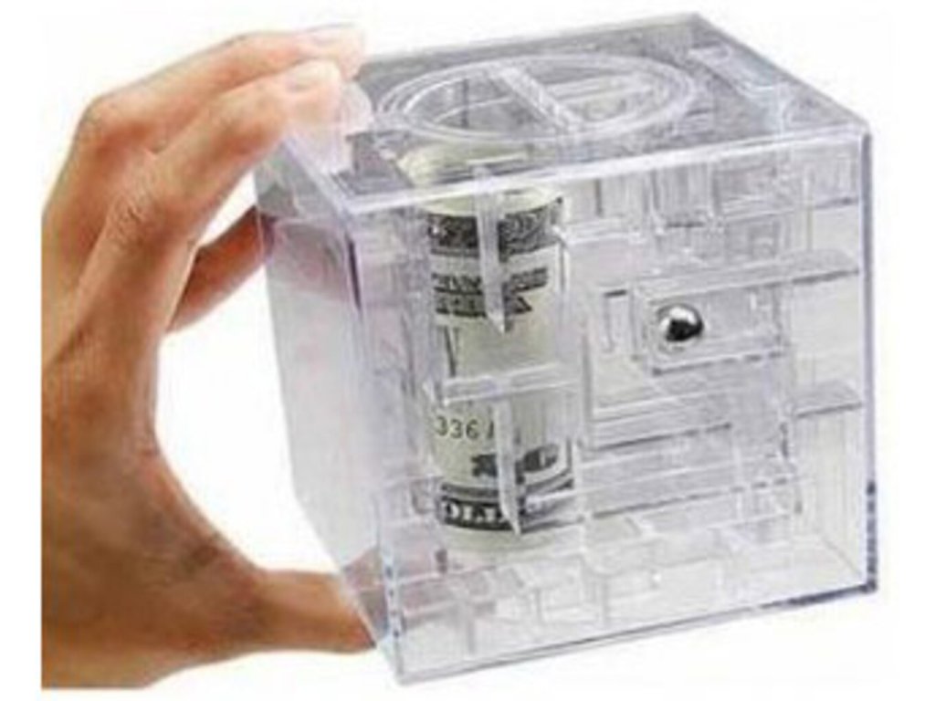 Říká se, že cesta k penězům je opravdu spletitá. Většinou se tento výrok vztahuje na peníze, které teprve vyděláte, díky této kasičce mu však můžete dát úplně jiný rozměr! Tato inteligentní kasička Vám dovolí uložit peníze do svých útrob a dokud nepokoříte hlavolam, který v sobě ukrývá, už se Vám neotevře. Originální dárek pro děti a rozhazovačné přátele.