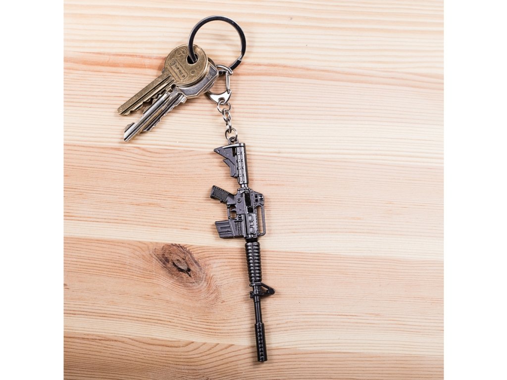 - kovová vojenská klíčenka: puška M4