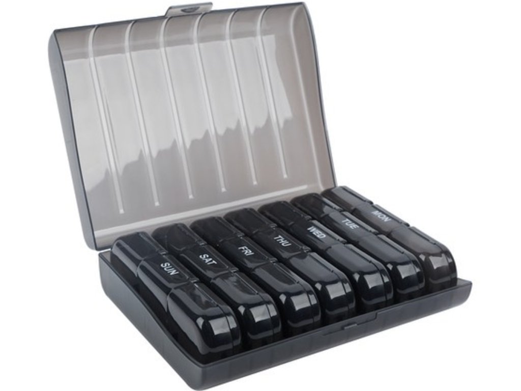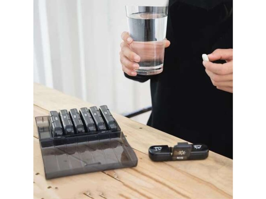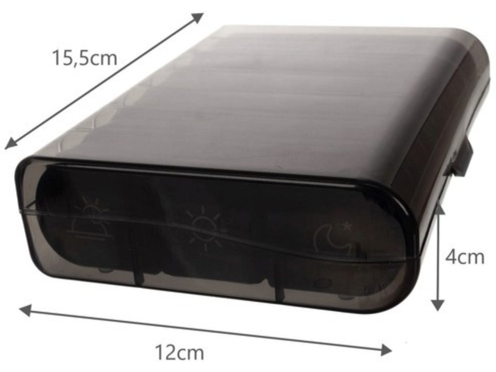 - Organizér by měl být skladován na suchém místě, kde nebude vystaven přímému slunečnímu záření nebo vlhkosti, protože to může ovlivnit kvalitu léků v něm uložených.