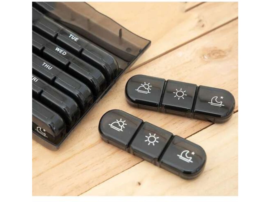 Zažijte bezstarostný každodenní život s naším špičkovým organizérem na léky, který kombinuje komfort, bezpečnost a praktičnost. Navržený pro ty, kteří potřebují mít své léky plně pod kontrolou, nabízí jasné rozdělení na dny a denní doby, což znamená, že už nikdy nezmeškáte žádnou dávku. Odolný a kompaktní design vám umožní mít léky vždy po ruce — ať už doma, v práci nebo na cestách. S jasně označenými přihrádkami a samostatně vyjímatelnými kontejnery vás tento organizér zbaví stresu z každodenního plánování léků. Tři oddíly v každém kontejneru, označené symboly pro ráno, poledne a večer, zajistí, že vždy víte, kdy co vzít. Nechte si doručit kousek klidu a pořádku až k vašim dveřím. Pořiďte si náš organizér na léky nyní a přeměňte každodenní starosti v historii. Splňte si touhu po dokonale uspořádaném a bezproblémovém životě!
