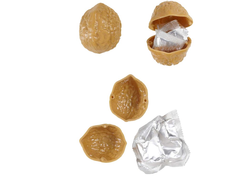 Máte rádi kanadské žertíky a jste člověk se smyslem pro humor? Darujte svému kamarádovi či kamarádce k svátku kondom v ořechu. Na první pohled se zdá, že jde o nevinný a lahodný oříšek. Avšak po jeho rozlousknutí Vás čeká překvapení jako pro Popelku. Nenajdete v něm sice šaty, ale kondom. Sledujte své přátele nachytané na tuto nevinnou srandičku a zasmějte se jejich reakci. Kondom v ořechu je originální dárek pro šprýmaře.