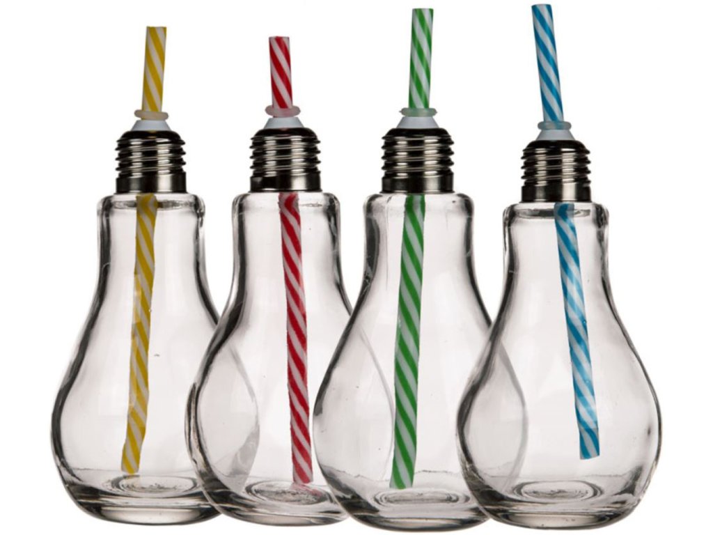 Tyto stylové retro sklenice s brčkem žárovka jsou krásným doplňkem Vaší kuchyně a také ideálním pomocníkem na žízeň. Sklenice ocení i Vaše děti. V létě můžete ve sklenicích podávat džusy, shaky a limonády. Dobijte svou energii a pitný režim díky těmto šikovným žárovkám. Sklenice mají netradiční vzhled, avšak s těmito žárovkami nerozsvítíte světlo, ale uhasíte s nimi žízeň. Sklenice jsou ideální na ven i na doma, díky šroubovacímu víčku nápoj nerozlijete. Sklenice s brčkem žárovka jsou originální dárek do kuchyně.