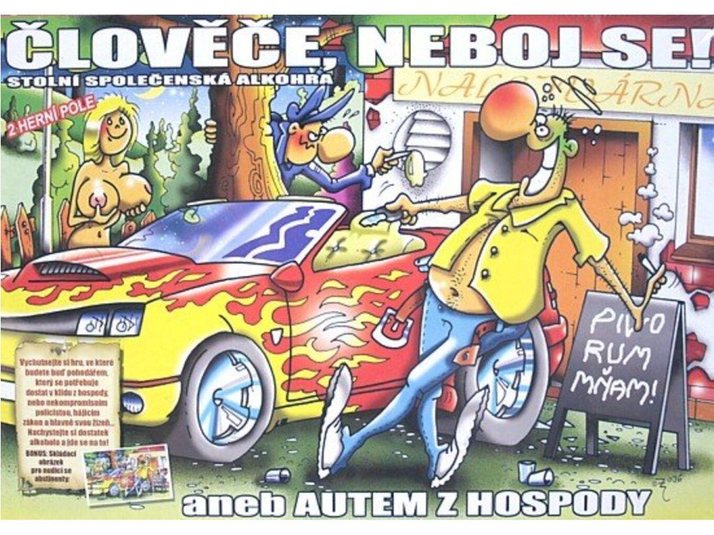 Člověče neboj se aneb autem z hospody je zábavná společenská hra pro dospělé. Jedná se o jednu z mála her, ve kterých opravdu nezůstanete střízliví. Proto se pořádně obrňte a pokud na to nemáte žaludek, tak raději nehrajte. Ve hře narazíte na desítky úkolů a různé bonusy. Úkoly jsou převážně alkoholové. Dokážete dojet do cíle po svých? Pusťte se do hry a užijte si mnoho zábavy. Hra je určena pro 2-6 hráčů - může být i více.