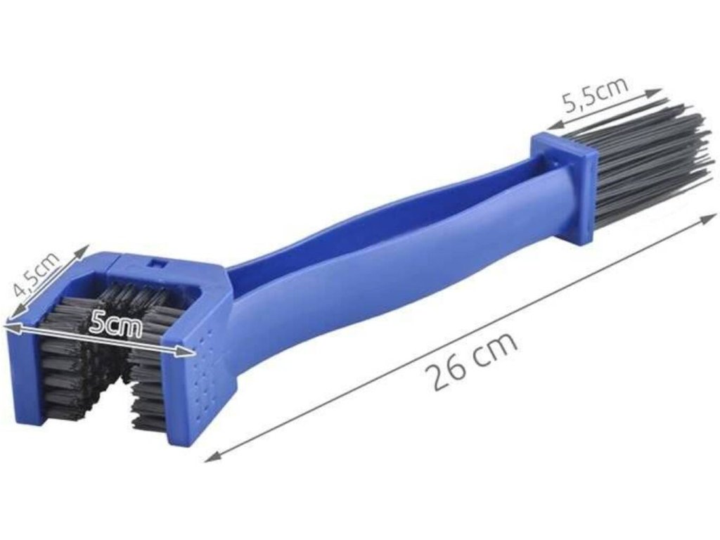 Pravidelné používání kartáče zabraňuje předčasnému opotřebení řetězu Kartáč na čištění řetězu, např. motocyklu, jízdního kola. Umožňuje čištění bez demontáže řetězu. Kartáčkem můžete vyčistit i jiné kovové části (ozubená kola, šrouby atd.).