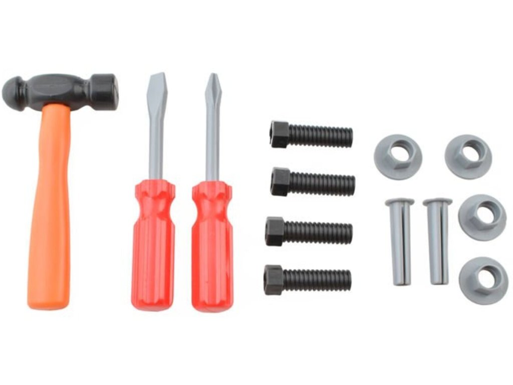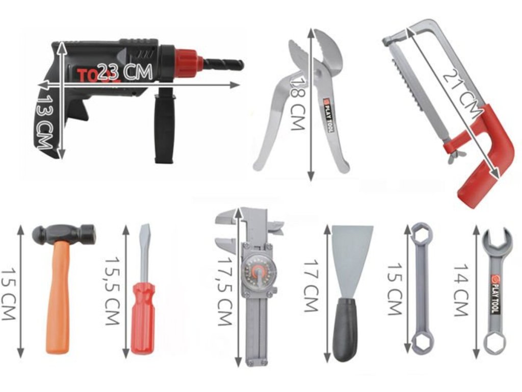 Skvělá sada nástrojů v kufru pro každé malé kutily. Sada rozvíjí manuální dovednosti, představivost, vykonává odpovědnost a pilnost. Je to skvělá zábava. Nástroje jsou funkční - vrták má rotační vrták (není potřeba baterie), klíč je nastavitelný, ruční pila je pohyblivá a šrouby ze sady lze zašroubovat.
