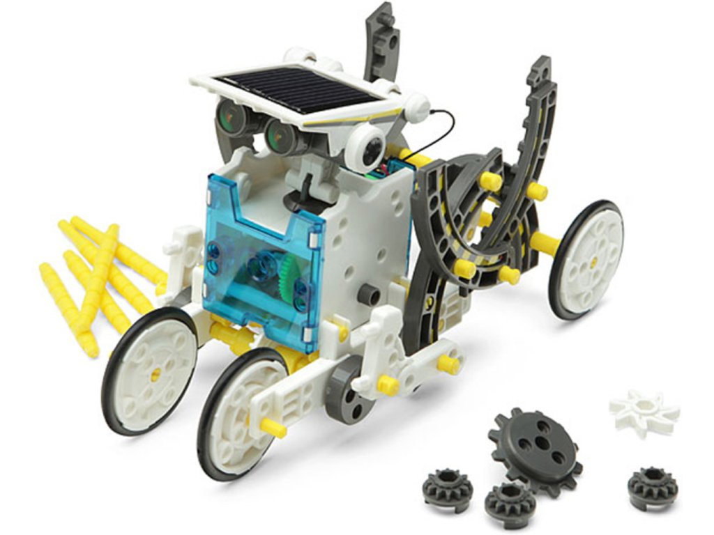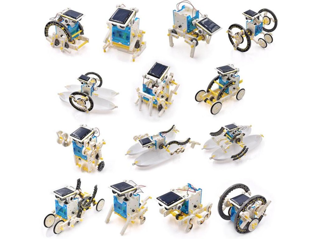 Ukažte svým dětem výhody solární energie hravým způsobem a pořiďte jim tuto stavebnici se solárním panelem, SolarBot 14v1. V dnešní době jsou solární panely populárním a ekologickým zdrojem energie. Zapojte své děti do tohoto boomu! Tuto solární hračku je možné přestavit do 14 různých hraček, které zahrnují velké množství komických a funkčních pohybů, přičemž není zapotřebí žádného šroubováku ani lepidla. Hračka se může snadno změnit z vrtícího ocasu, běžícího brouka, kraba, surfaře, speedstera nebo na „zombie honičku“. Sada robotů poskytuje jedinečné příslušenství (součástí balení) a součásti, díky nimž se robot pohybuje po zemi a po vodě.Stačí trocha zručnosti. SolarBot 14v1 je originální dárek pro děti.