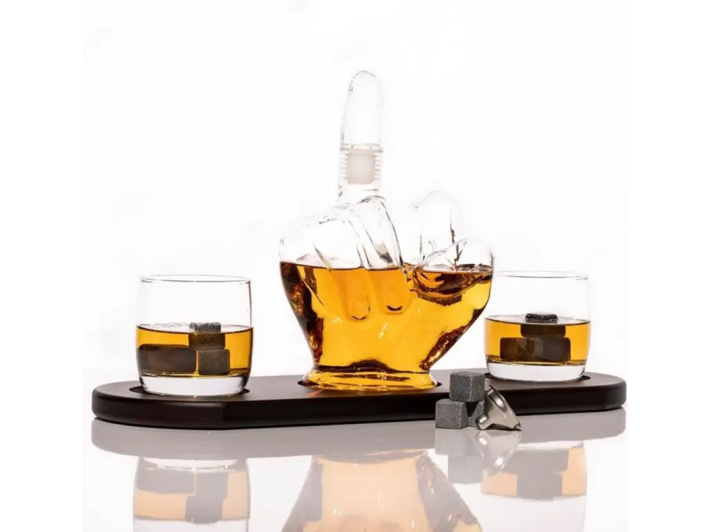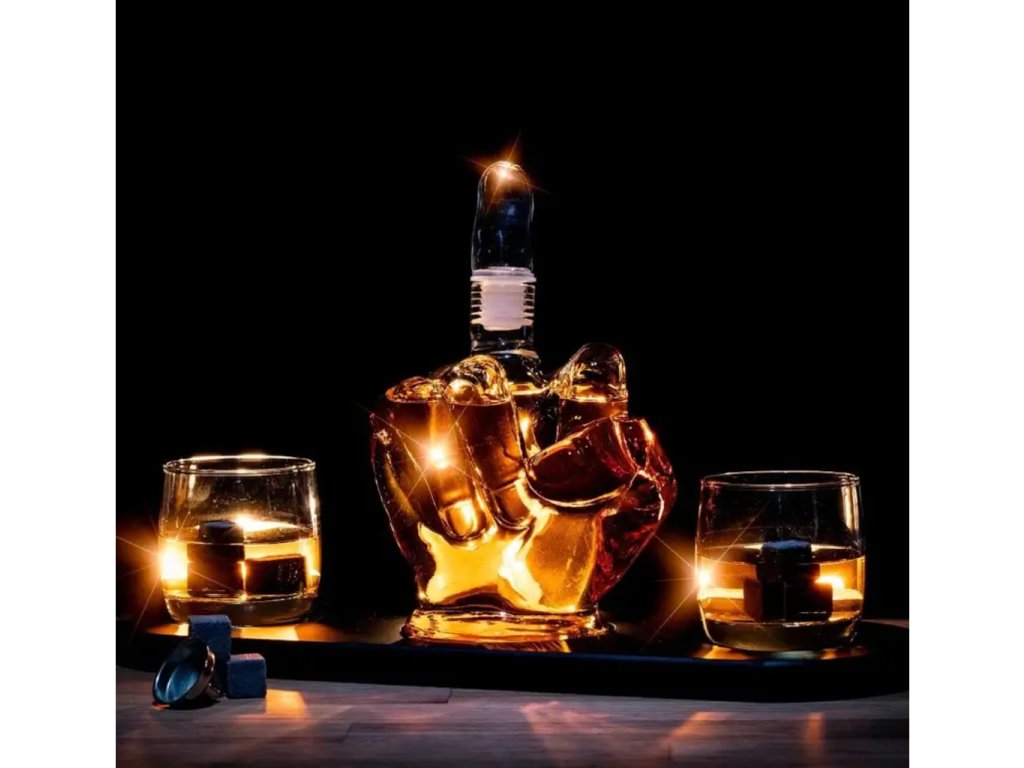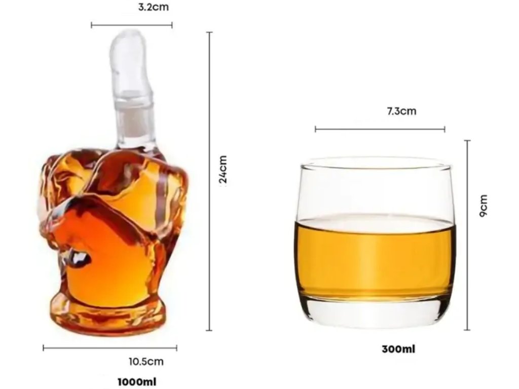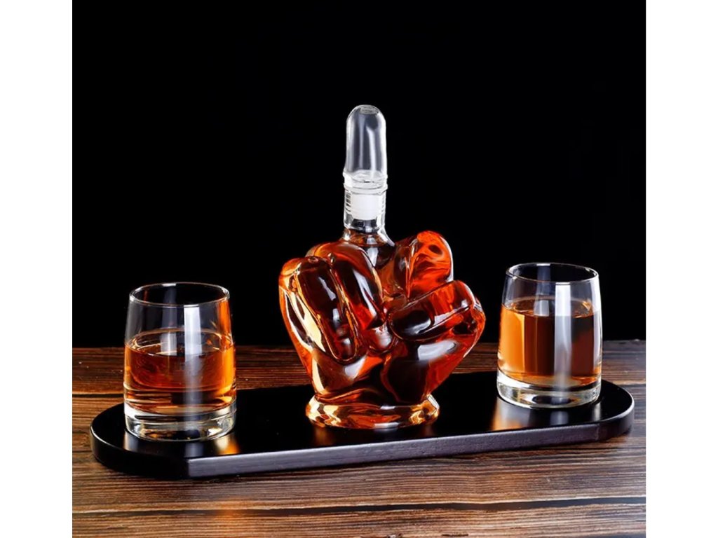 Pokud se cítíte zle a chybí vám slova k vyjádření frustrujícího světa kolem vás, nechte svou karafu mluvit za vás. Přidejte do svého života špetku humoru nebo signalizujte svůj protest proti světu naší karafou prostředníček se sklenicemi. Karafa pro odlehčení nálady každého v místnosti, Karafa prostředníček se sklenicemi umožňuje uvolněnější atmosféru. Sklenice jsou vyrobeny ze 100% bezolovnatého vysoce bílého skla a zahrnují borovicovou základnu, která propůjčuje místnosti špičkovou atmosféru. Karafa a její sklenice jsou vyrobeny z borosilikátového skla a splňují nejvyšší standardy kvality ve svém segmentu. Náš nekompromisní přístup ke stavebnímu materiálu vám umožní být v klidu s karafou, která se snadno používá, je robustní a má nedotčenou kvalitu.
