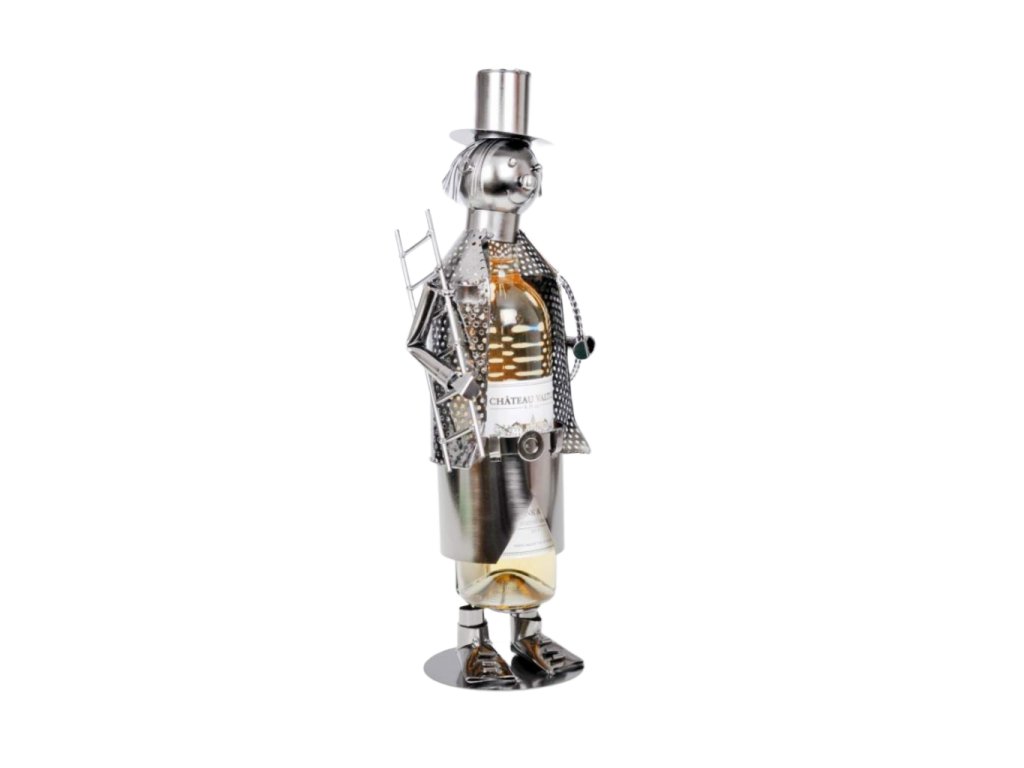 Osvěžte svůj pokoj nevšedním stylovým Stojanem na víno - Kominík pro štěstí, který předvádí kreativitu v celé své kráse. Není nutné, aby láhev dobrého vína stála na stole jen tak obyčejně. Tento Stojan na víno - Kominík pro štěstí vyniká svým lákavým designem a motivem. Má přesvědčivý design spojený s ohromující metalovou barvou, které je těžké odolat. Položte ji na stůl a to jistě upoutá pozornost každého. Darujte jej spolu s vínem na večírcích a setkáních a buďte trendy pro ostatní. Můžete také darovat tento držák na lahve jen tak bez láhve vína a udělte radost svým blízkým. Nevšední a stylový stojan na jednu láhev vína v designu kominíka pro štěstí, který Vám osvěží interiér! Doporučujeme jako tematický dárek ke svátku, k narozeninám, k výročí nebo jako doplněk k dobrému vínu. Přineste tento stojan s vínem jako pozornost na večírek a budete pro ostatní trendy jako nikdo jiný. Radost udělá jak Vašim přátelům, tak i šéfovi.