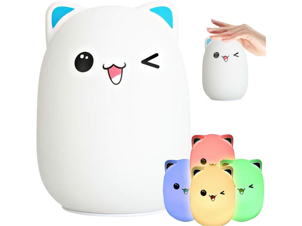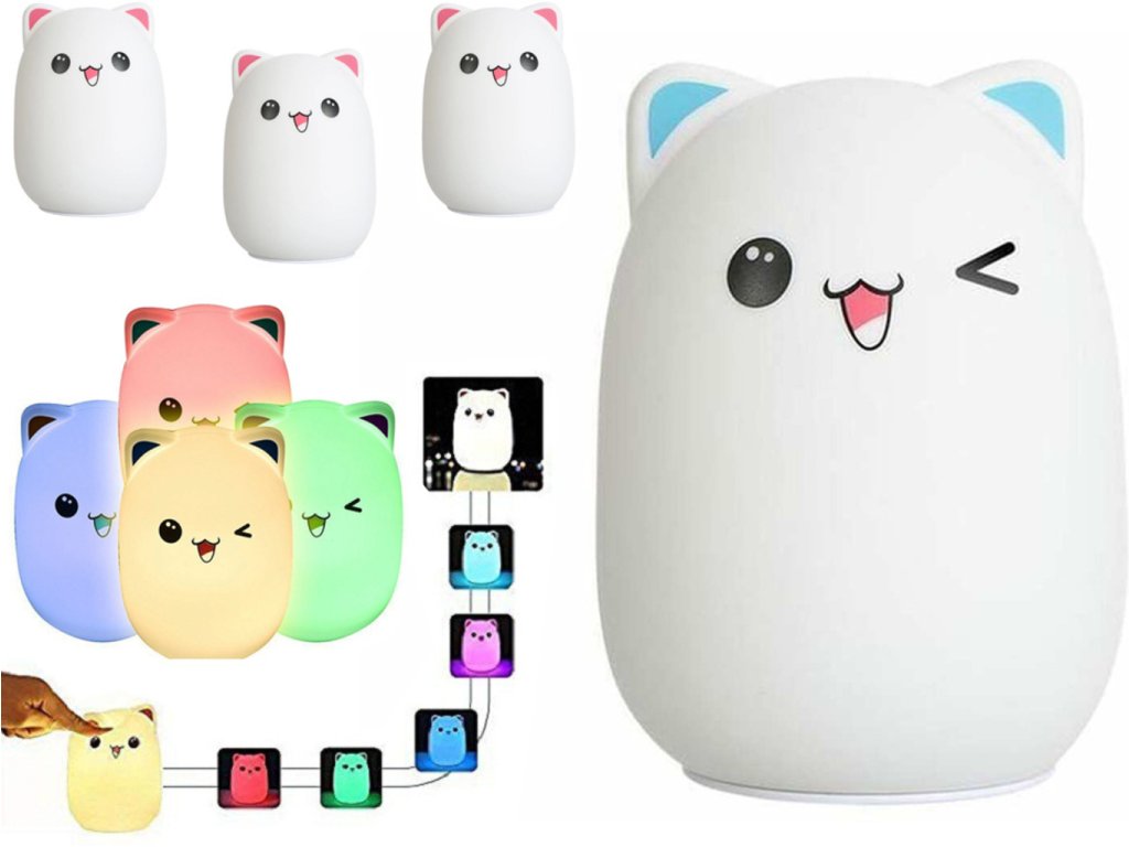 Noční RGB lampička dotyková kotě USB 1200mAh je skvělým dárkem pro chlapce i dívky, díky své odolnosti a snadnému použití potěší každé dítě.