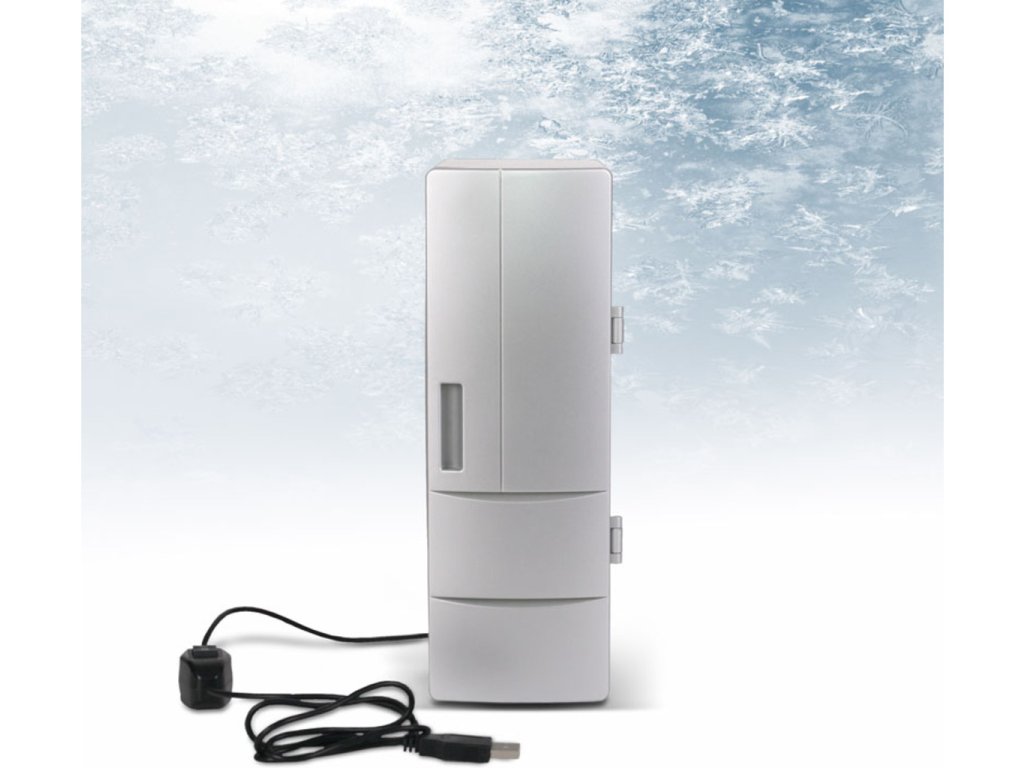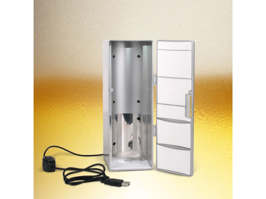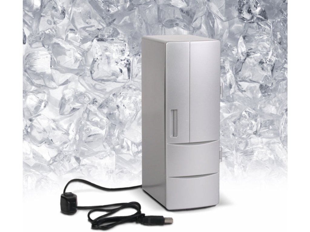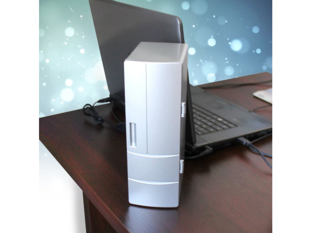 Sedíte v horkém letním dni u PC a potíte se? Chtělo by to osvěžení? Proč nemít přímo u PC malou USB ledničku MAX, do které se pohodlně vleze plechovka piva nebo koly? Tato malá lednička se napájí přímo z USB a dopřeje Vám vychlazený nápoj i v horkých letních měsících. Originální dárek pro kolegu z práce.
