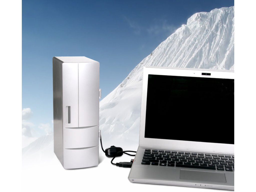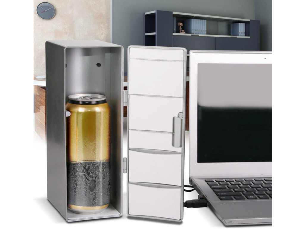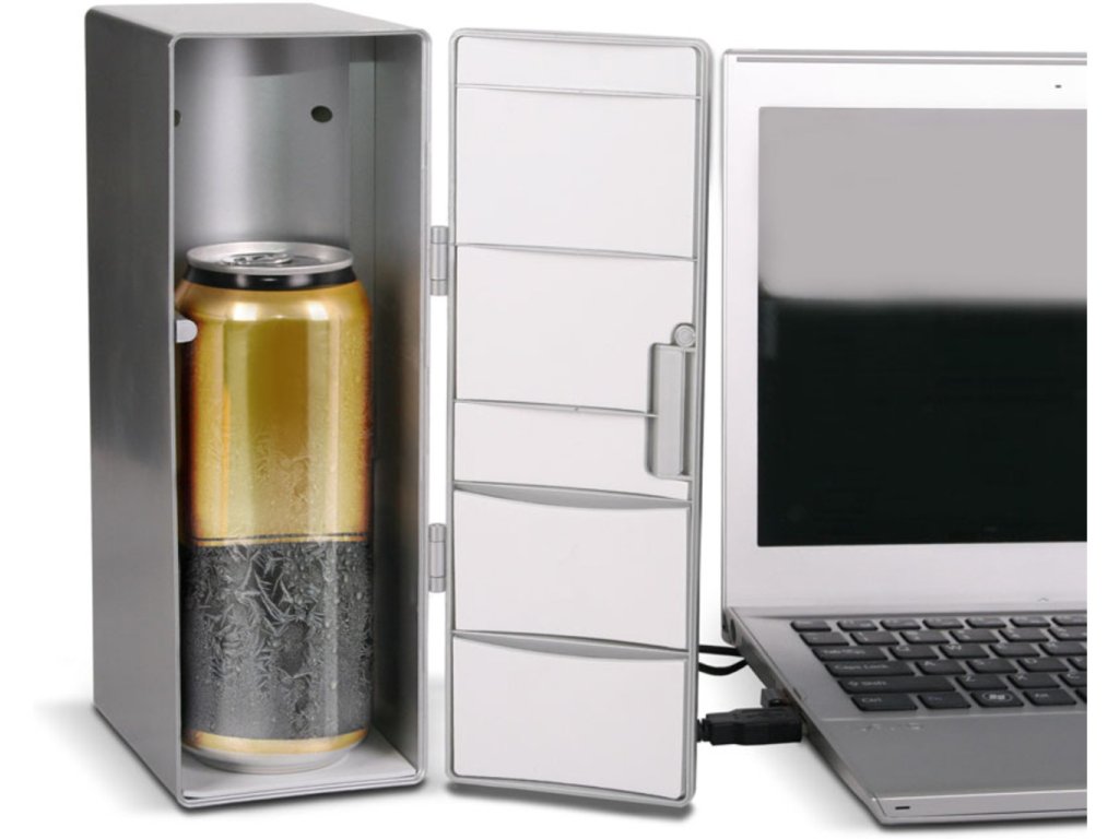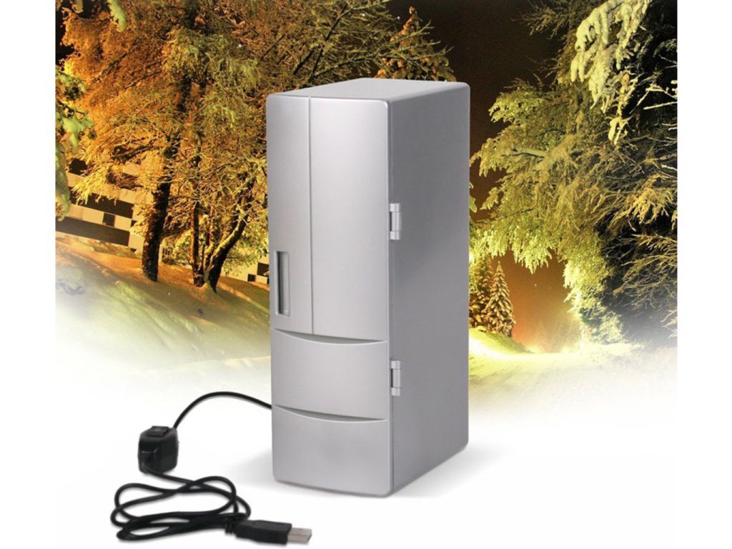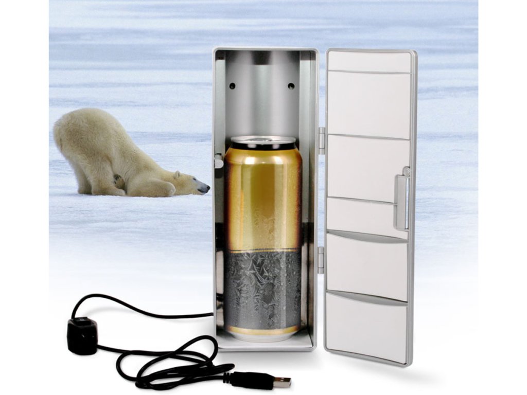 Sedíte v horkém letním dni u PC a potíte se? Chtělo by to osvěžení? Proč nemít přímo u PC malou USB ledničku MAX, do které se pohodlně vleze plechovka piva nebo koly? Tato malá lednička se napájí přímo z USB a dopřeje Vám vychlazený nápoj i v horkých letních měsících. Originální dárek pro kolegu z práce.