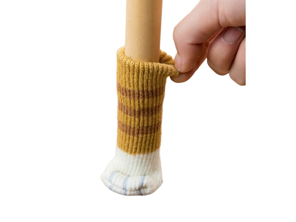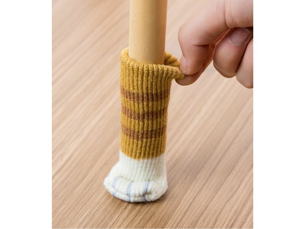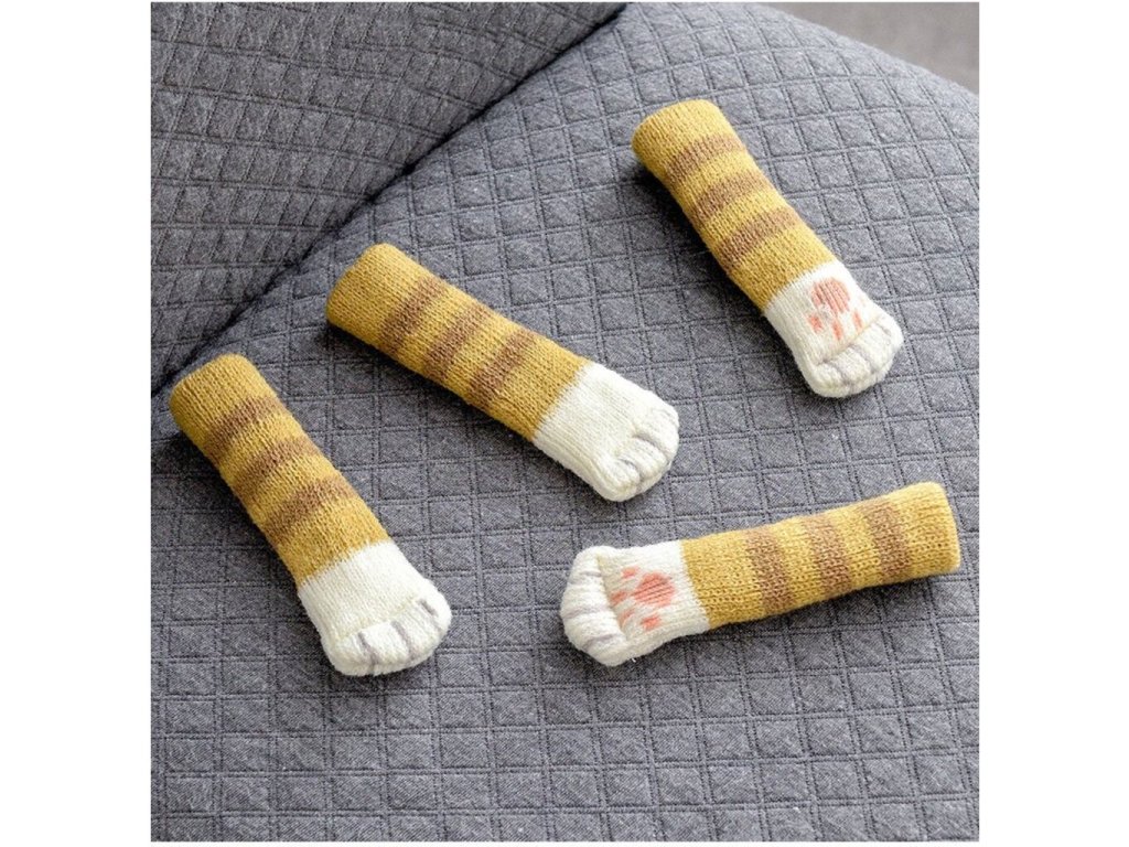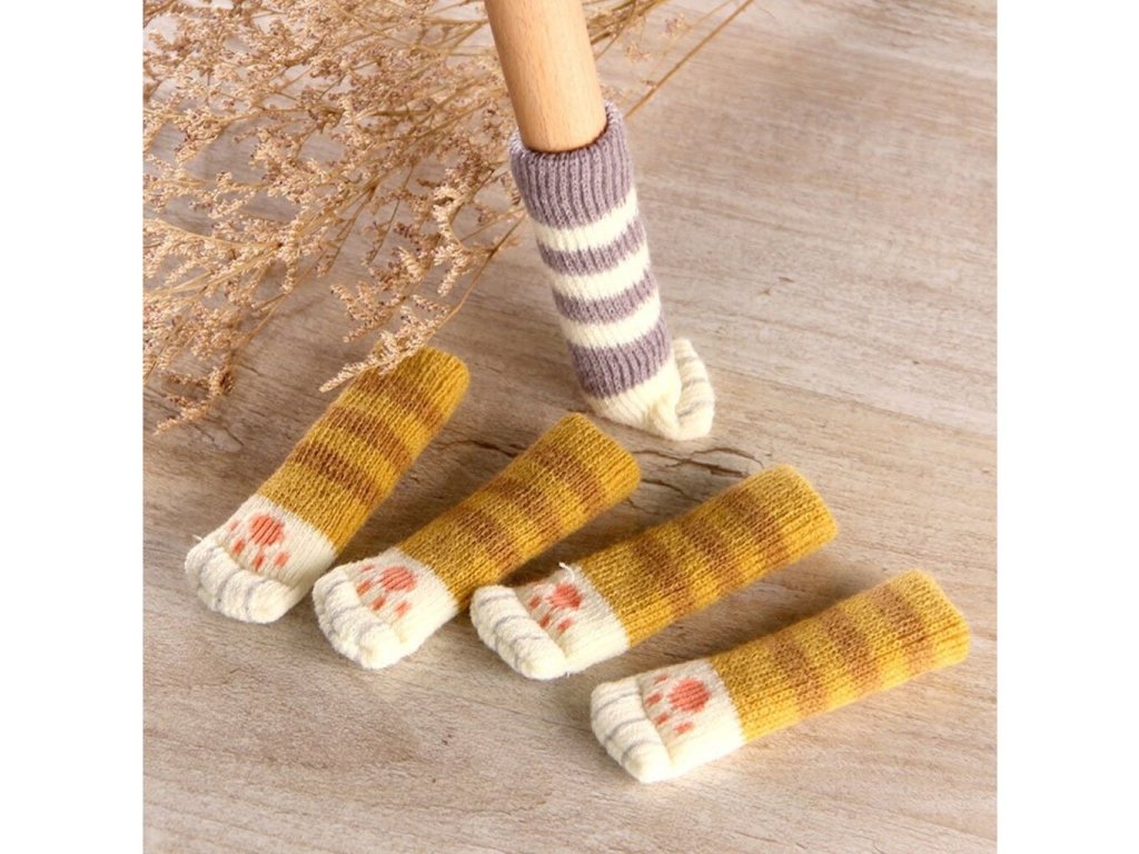 Čtyři pěkné a velmi praktické potahy na nohy židlí, stolů nebo komody ve tvaru kočičích nohou.
