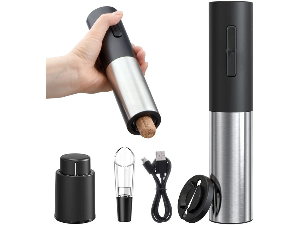 Máte pochybnosti, zda je elektrický otvírák na víno ten pravý produkt pro vás? Představte si pohodlí, kdy jediným stiskem tlačítka otevřete láhev svého oblíbeného vína za pouhých 5-7 sekund. Žádné zdlouhavé zápasení s tradičními otvíráky, žádný rozlitý nápoj, jen čistá elegance a jednoduchost. Tento otvírák je ideální nejen pro specializovanou kuchyň, ale i pro domácí pohodlí, kdy třeba sledujete oblíbený film. Vyrobený z vysoce kvalitních materiálů a v elegantním designu, který dodá vašemu prostoru nádech luxusu. Navíc, sada obsahuje i užitečné příslušenství – otvírák na fólie, nalévací trysku a vakuovou zátku s datumovkou. Tohle multifunkční zařízení zaručeně obohatí jakékoli společenské setkání nebo dárek pro vaše blízké. Nenechte si ujít šanci na pohodlné a stylové požitky z vašich oblíbených vín. Objednejte nyní a objevte nový rozměr vína!