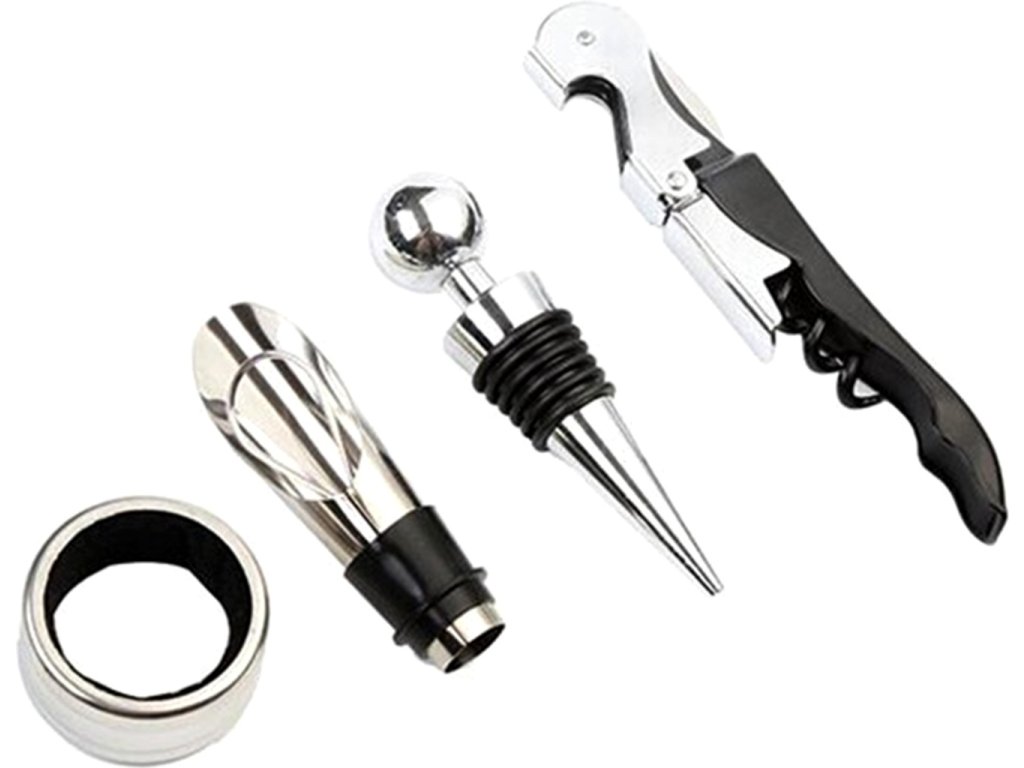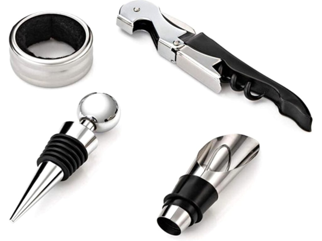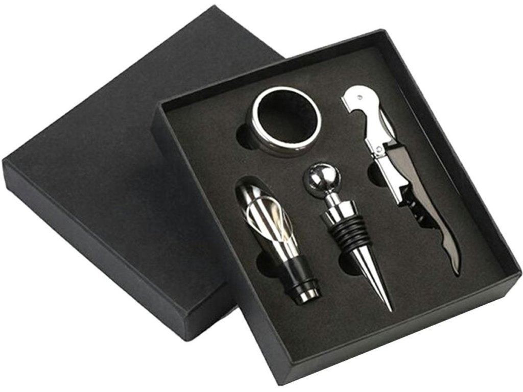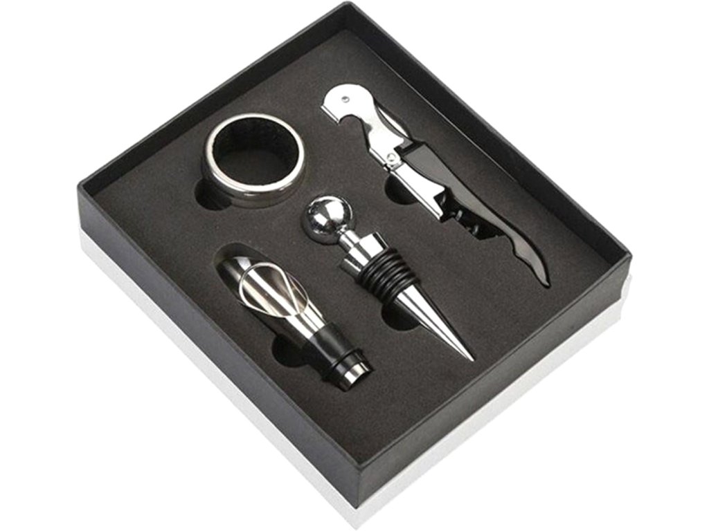 Představte si, že každý okamžik, kdy otevřete láhev vína, se promění v malý rituál elegance a potěšení. Naše exkluzivní čtyřdílná sada na víno je klíčem k tomu, abyste tyto okamžiky zažívali každý den. Pečlivě navržená sada obsahuje vše, co potřebujete k dokonalému servírování vína, umístěná v sofistikované krabici, která již sama o sobě působí jako umělecké dílo. Vyrobeno z chromované kovové slitiny a vysoce kvalitního plastu – tato kombinace zaručuje dlouhou životnost a pohodlnou manipulaci s každým doplňkem. Elegantní design této sady zaujme i ty nejnáročnější milovníky vína a stane se cenným doplňkem každé domácnosti. Nečekejte na zvláštní příležitost! Dopřejte si tuto jedinečnou sadu, která je také ideálním dárkem pro každého vinného gurmána. Objednejte nyní a přetvořte své vinné chvilky v nadčasový zážitek!